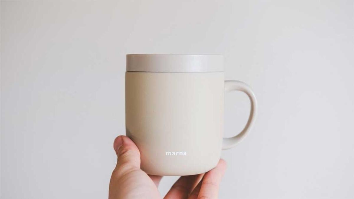 マーナの「360°カップ」は、フタをしたまま360°どこからでも飲めるマグカップ。