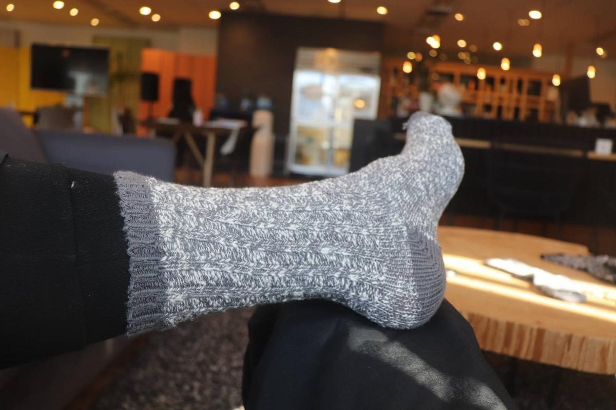見た目だけだとゴワゴワしていそうですが、履いてみると意外とソフト! 肌にピタッとくっつくというよりは、太い糸の力で足全体を均一に覆っている感じです。なにより暖かい……!