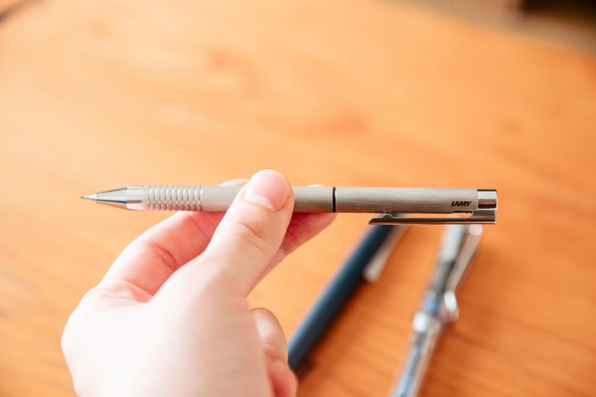 こちらは「LAMY logo stainless hairline ツインペン」。シャーペンとボールペン、どちらの機能も備わったペンになっています。