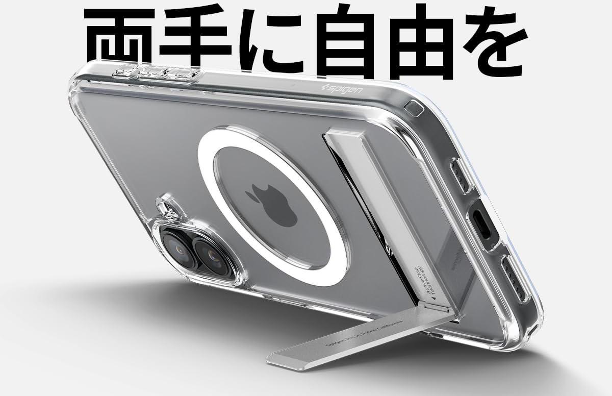 さらに、背面にはMagSafeの磁力をより強くしてくれるリングとキックスタンドが内蔵されています。