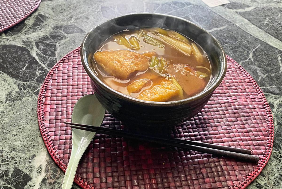 山本ちえが小豆島の「甚助・手延べ饂飩」を送ってくれたので、カレーうどんにして食べた。