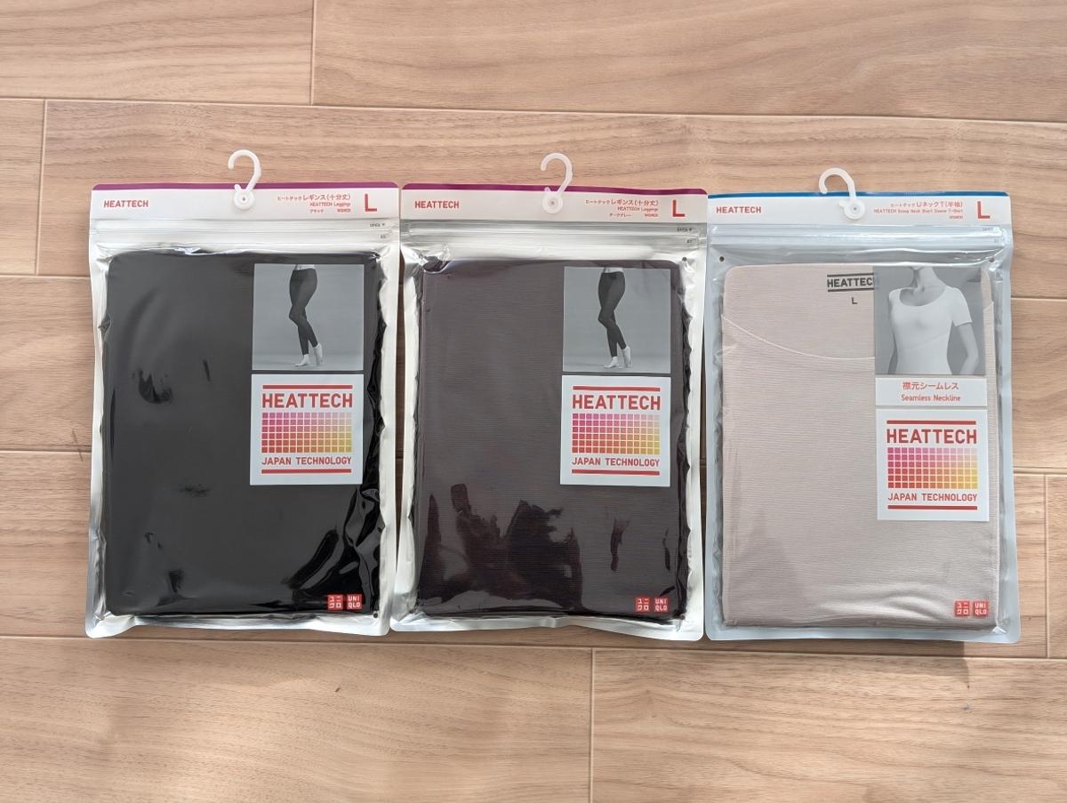 ヒートテックレギンスと一言でいっても、「極暖」とかいろいろありますね。今回は通常のヒートテックをゲット。期間限定価格で1点990円でした。ヒートテックUネックTも同じく限定価格で990円。トータル3点で2,970円です。