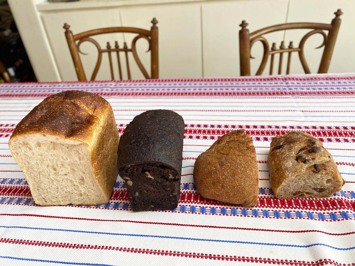 café au lait、本日の元気、ヨーグルト。レイコさんが東京から美味しいおいしいBartizan Breadのパンを4種類も送ってくれた。わ〜〜い、嬉しい!