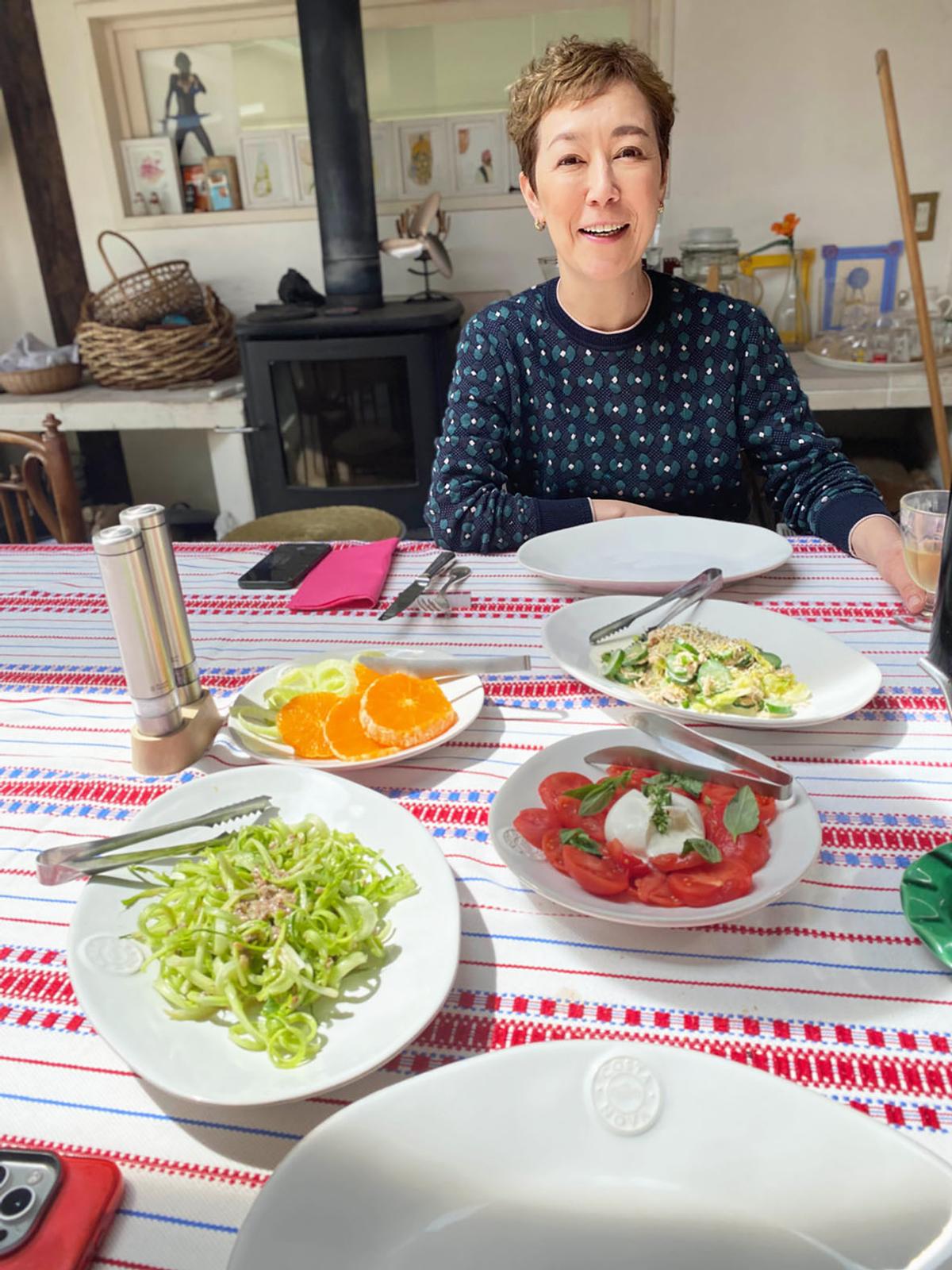 クリス智子ちゃん来訪。お会いするの、2ヶ月ぶりだろうか。簡単ごはんで歓待。フェンネルとせとか(柑橘)、春キャベツときゅうりとツナ缶、トマトとブッラータ、プンタレッレ。全てが野菜料理。カリウム値高し! 要注意だよ!