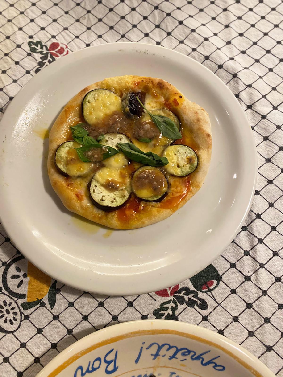 続いてトマトソースにナスとアンチョビ、モッツァレッラ。これがね、おいしいの。