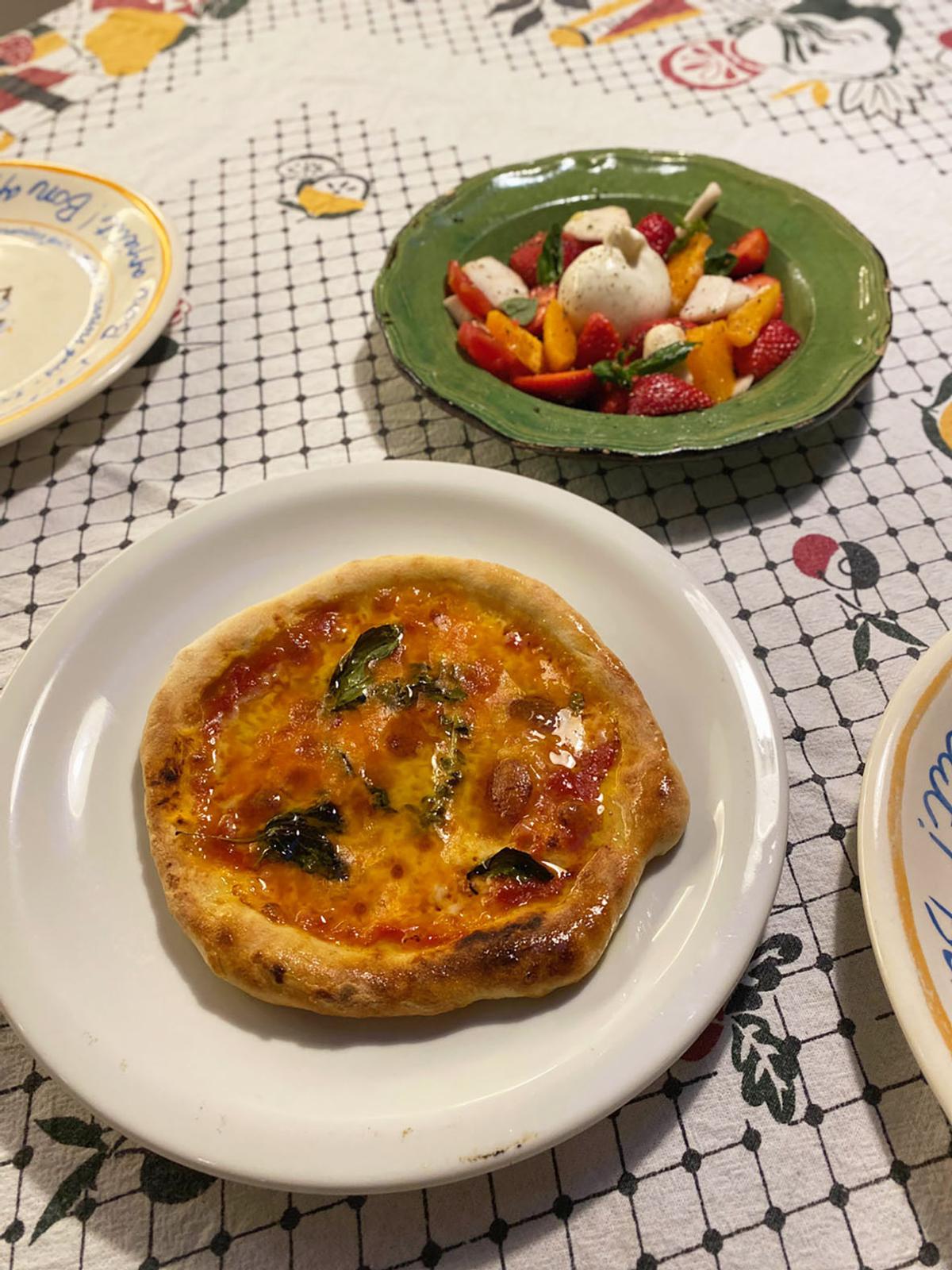 昼にお披露目したかったPizzaを家族二人で試します。まずはマルゲリータ。お、いいね、いいよ!