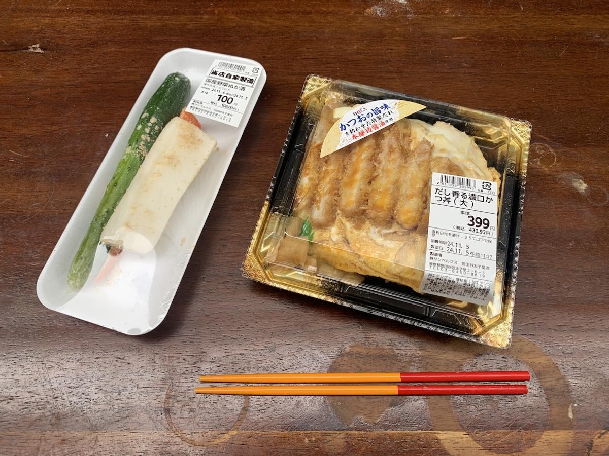 店内調理の出来立てアツアツが並んでいるカツ丼、キリッと濃いめの出汁が効いていて他のスーパーのカツ丼よりも好みすぎる。