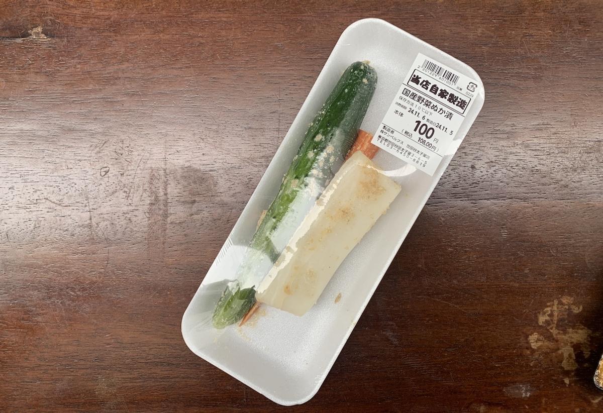 大人気の自家製ぬか漬けはこのボリュームで100円! 味も香りも良いので毎回購入してしまいます。