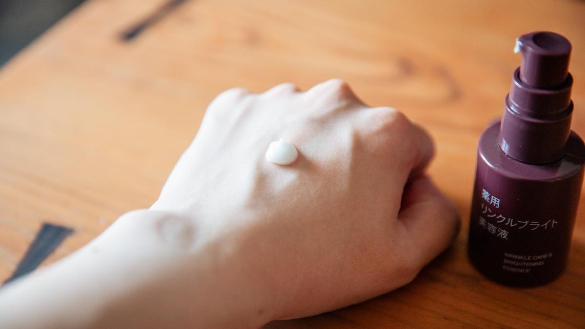 これまで使っていた「エイジングケア薬用リンクルケア美容液」と比べると、こちらの方がクリーム感強めです。