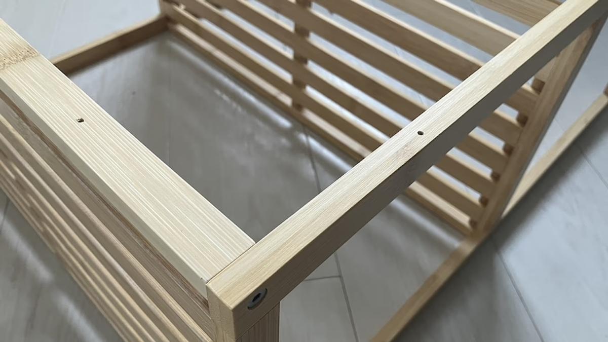 今回購入したのは、「竹材 フリーラック3段」。先日紹介したコーナーラックと同じ高さ600mm、3段タイプのフリーラックです。
