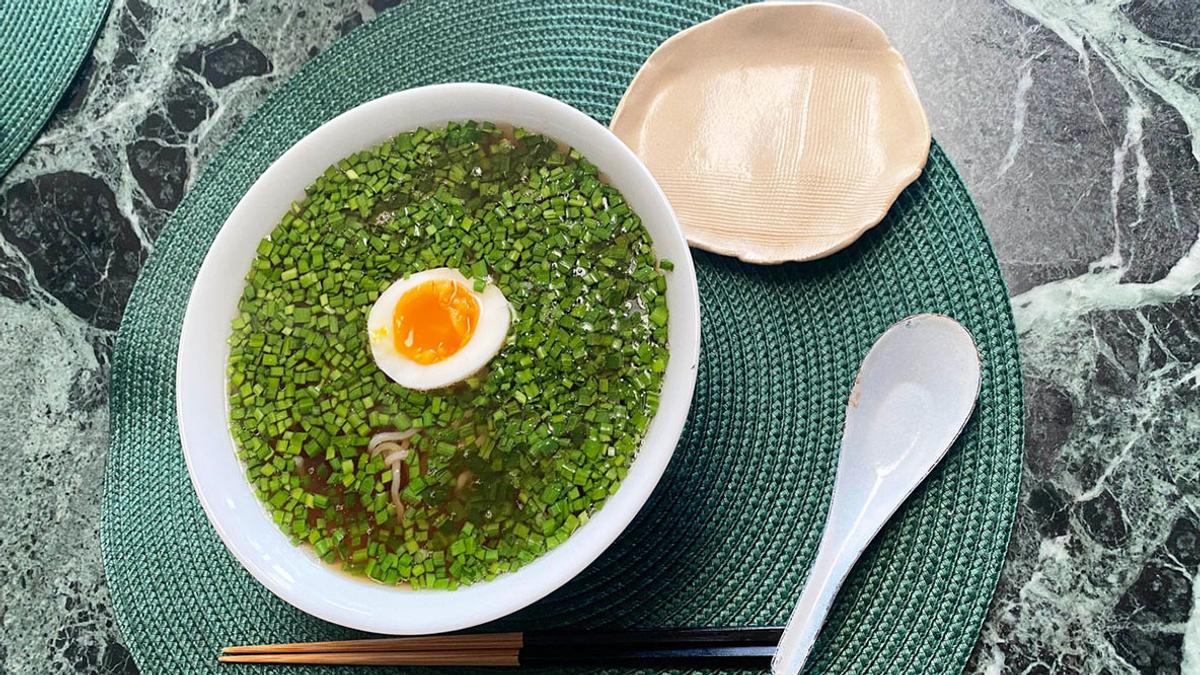 ニラに熱々のゴマ油をジュワッとかけたラーメン、美味しいので、またもや作りました。今回は半熟卵のせ。喜多方ラーメン醤油味(三浦屋:安くてうまい)。