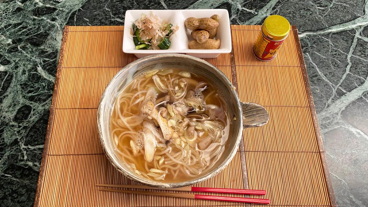 キノコ(椎茸、しめじ、えのき)と油揚げで「半田うどん」。半田うどん、つるんとしていて美味しいね。今年は松茸が豊作だというウワサ。今年は何回か食べられるかなあ。