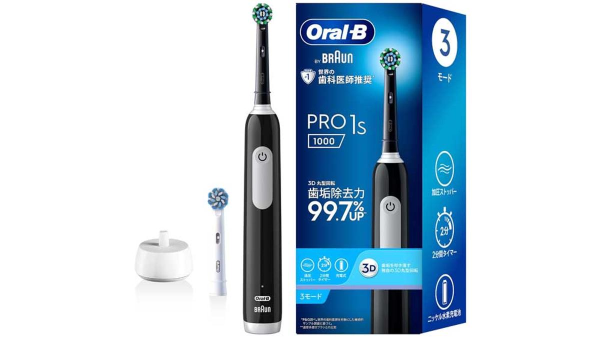 こちらのブラウン「オーラルB PRO1S」は、電動歯ブラシを使ったことがない人向けの初心者モデル。「標準クリーン」のほかに「やわらかクリーン」「ホワイトニング」のモードを搭載しています。