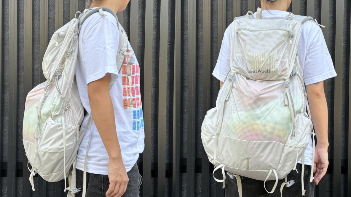 30デニールと非常に薄手で、バックパック自体の重さはわずか480g。モンベルで取り扱っている別の同容量バックパックと比べても、半分ほどの重さです。