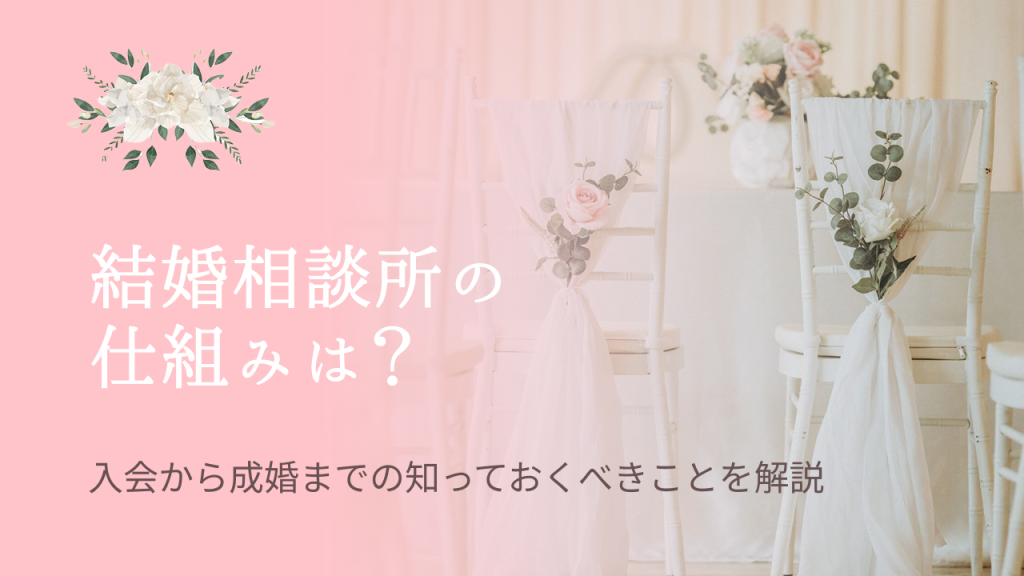 結婚相談所は、結婚を真剣に考えている男女が会員として登録し、条件や価値観を基に相手を探したり紹介してもらうサービスです。 マッチングアプリとは異なり、結婚相談所には独自の仕組みがあります。 結婚相談所に入会する際は、仕組みや入会から成婚ま... -