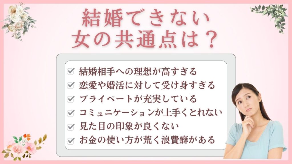 実は、結婚できない女性にはいくつかの共通点があります。
