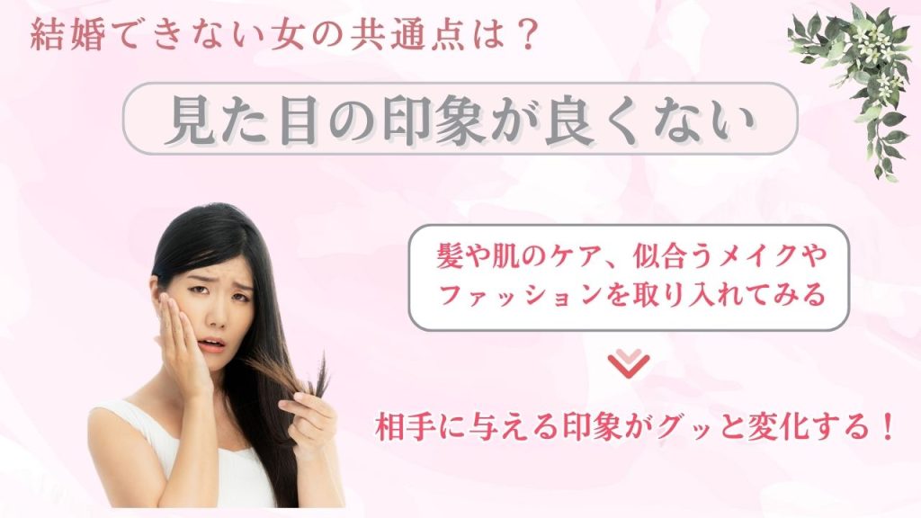 結婚できない女性の容姿には、相手に安心感や期待感を与えられない、という特徴があります。