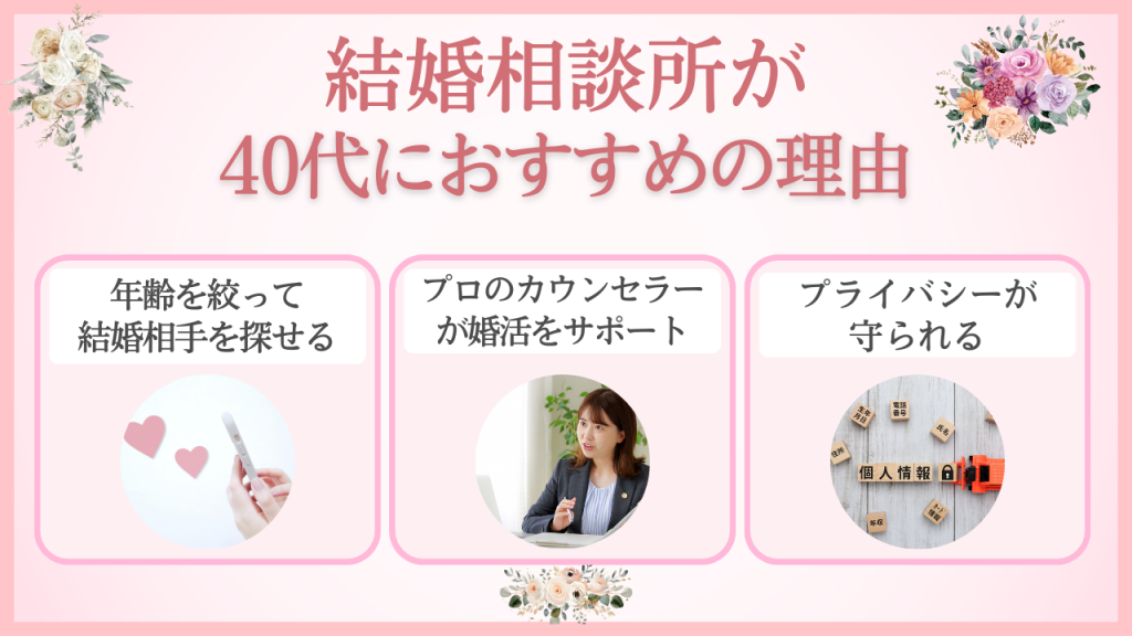 こちらの章では、なぜ40代に結婚相談所がおすすめなのかを解説します。