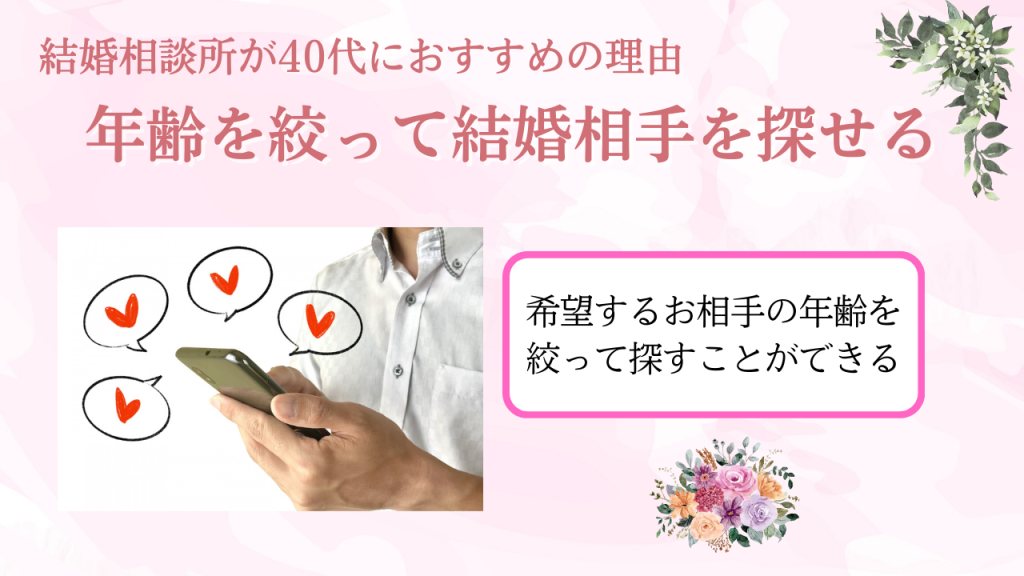 結婚相談所の良い点は、希望するお相手の年齢を絞って探すことができる点です。