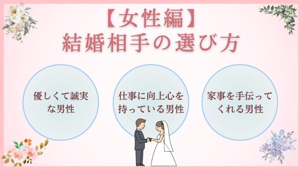 女性が結婚相手を選ぶ際は、ほとんどの場合、将来の安定性や生活の安心感を重視しています。