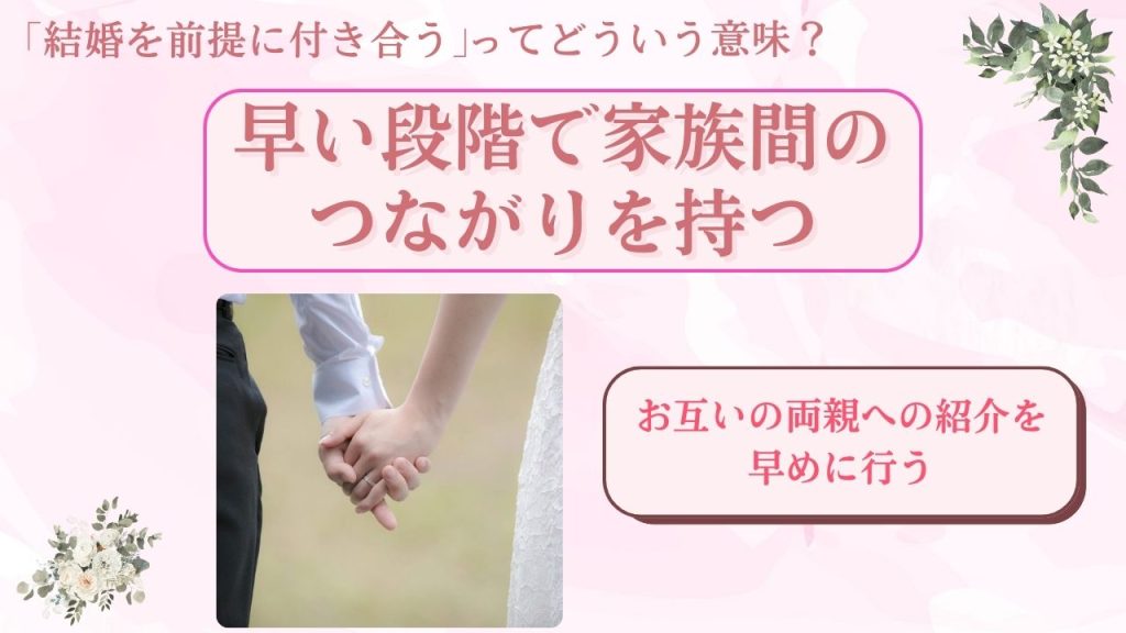 結婚前提の交際では、お互いの両親への紹介を早めに行う傾向にあります。