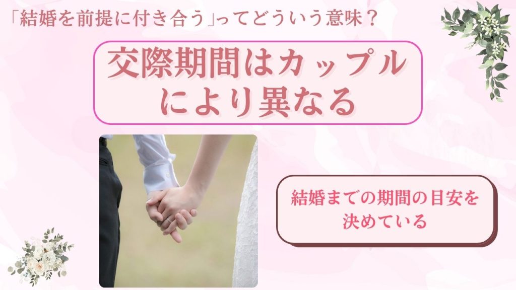 交際期間はカップルによって異なりますが、無理なくお互いのペースで進めていける期間を設けましょう。