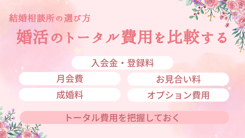 婚活を始める前に、月会費だけでなくトータルでかかる費用を把握しておくと安心です。