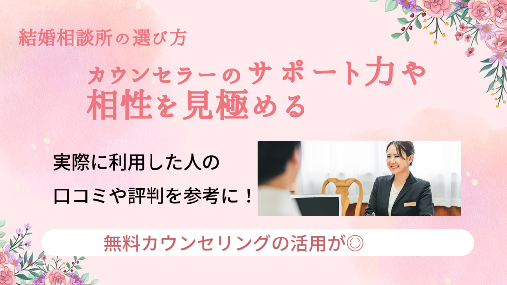 カウンセラーの質は、結婚相談所選びにおいて見落とせない要素のひとつです。