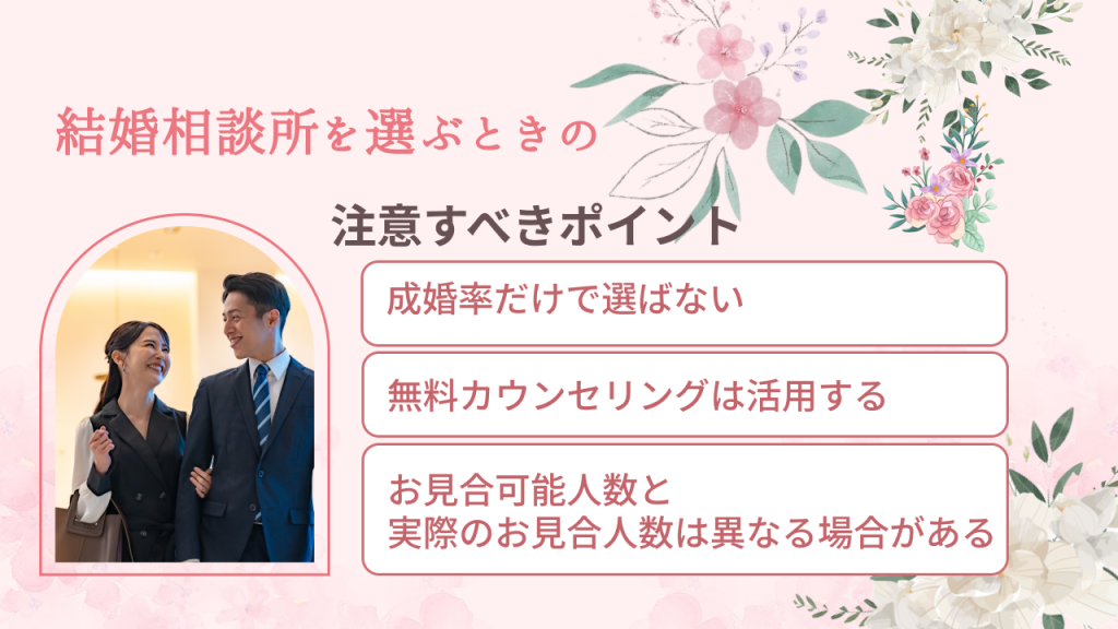 結婚相談所選びで失敗しないためには、事前に知っておくべき注意点があります。