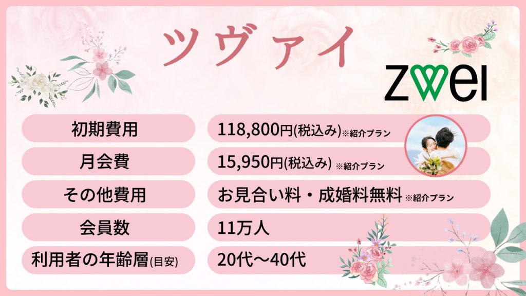 ツヴァイに入会する際は、118,800円(税込み)を初期費用として支払います。