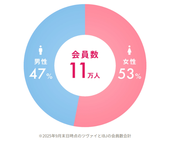 会員数も約11万人と、業界トップの店舗数と会員数を誇ります。(2025年9月末日時点のツヴァイとIBJの会員数合計)