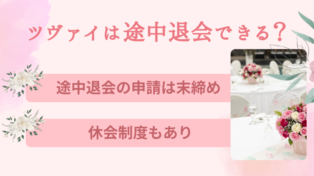 このような場合でもツヴァイは途中退会が可能で、婚活を一旦お休みすることもできます。
