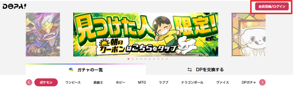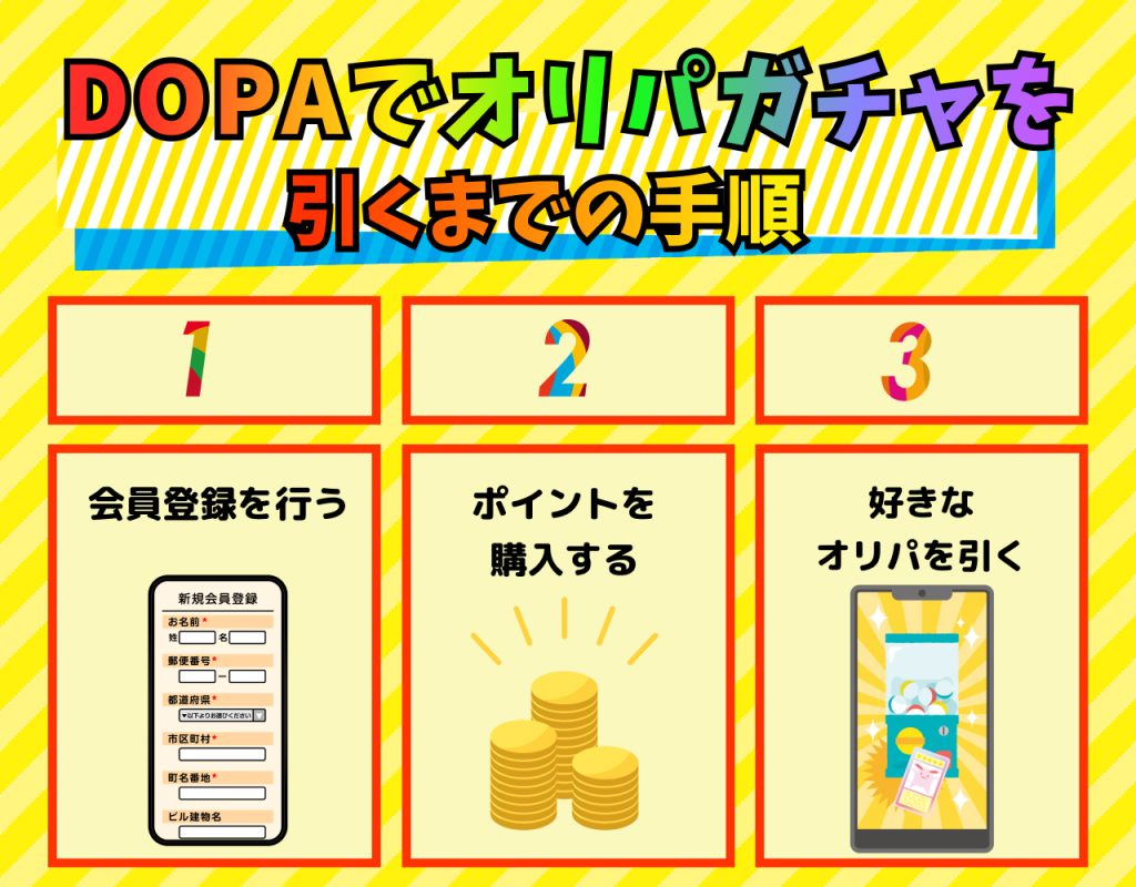 本項目では、DOPAオリパの会員登録方法からオリパガチャを引くまでの流れを分かりやすく解説するのでぜひ参考にしてください。