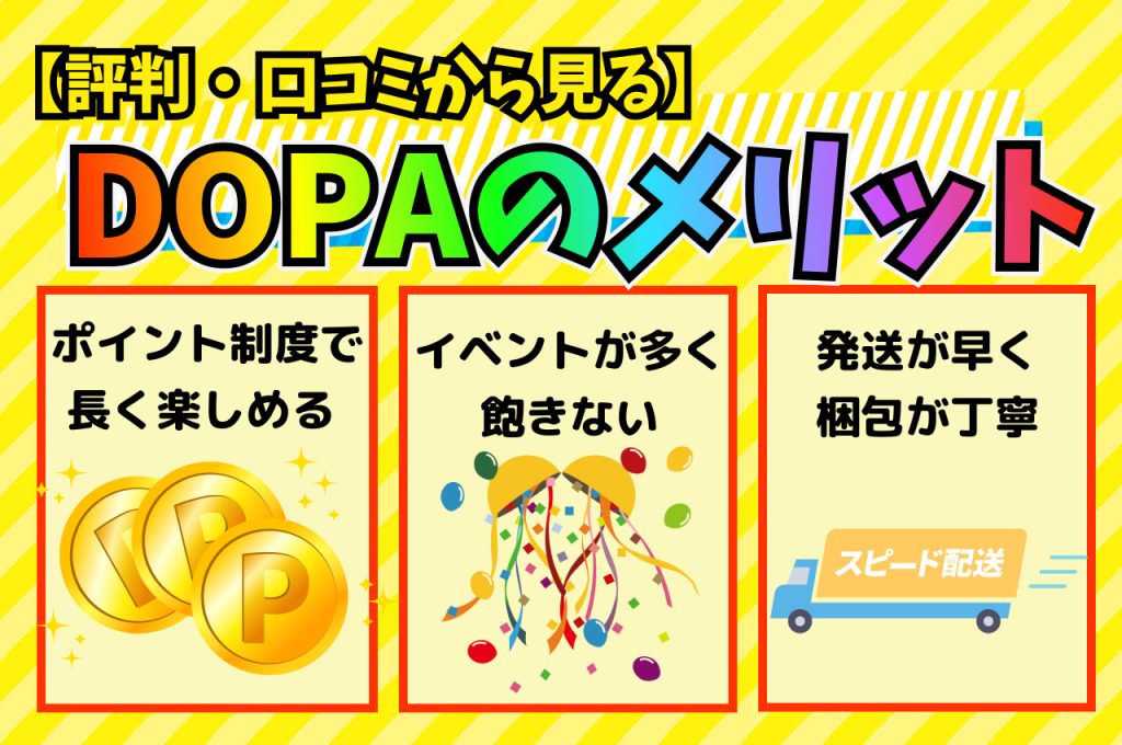 本項目では、実際にDOPAオリパを利用した方の口コミを調査して分かったメリットを3つまとめました。