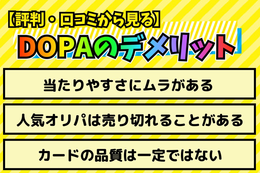 ですが、DOPAオリパは利用者が多く運営元の信頼性が高いので、比較的安全でしょう。