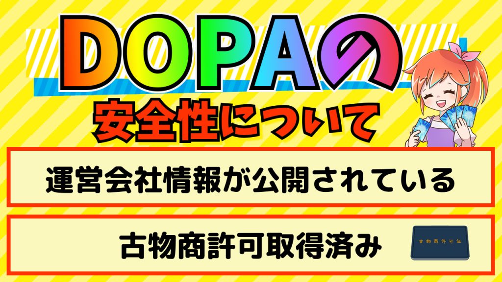 古物商許可を取得しているということは、適切な運営を行っているという証明になるため、DOPAオリパは安全性が高いでしょう。