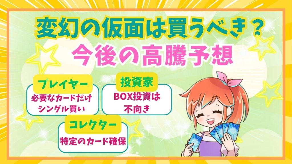 本項目では、変幻の仮面を買うべきかプレイヤー・コレクター・投資家の目線から詳しく紹介するのでぜひ参考にしてください。