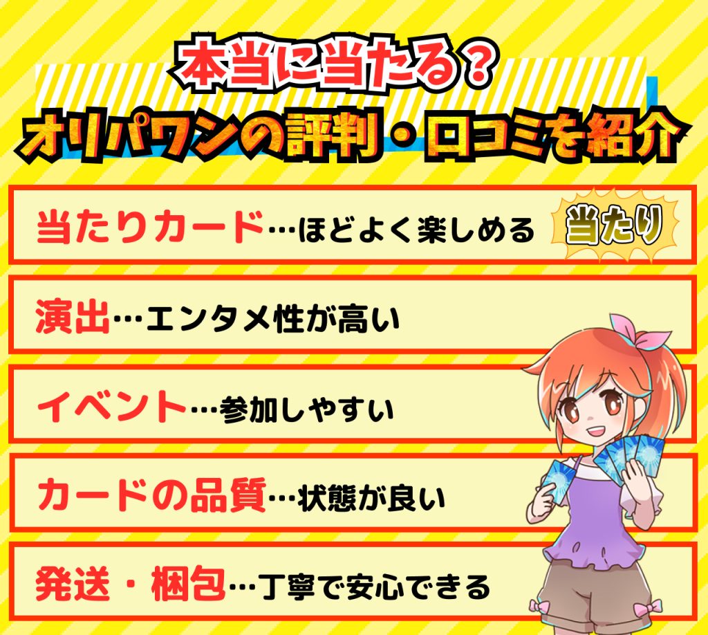 オリパワンが気になっている方や初めての方も、失敗せずに利用できる判断材料としてぜひ参考にしてください。
