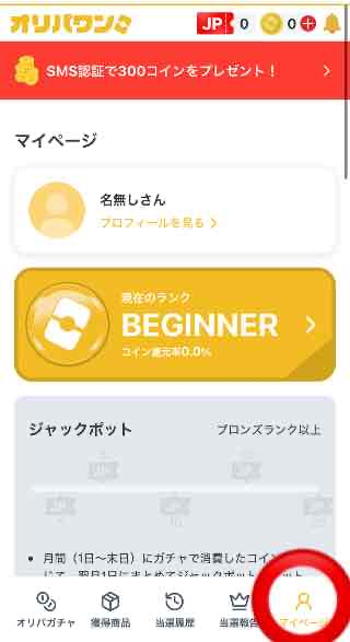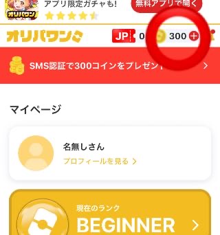 オリパワンでは、ガチャ購入に必要なコインを事前チャージして利用します。