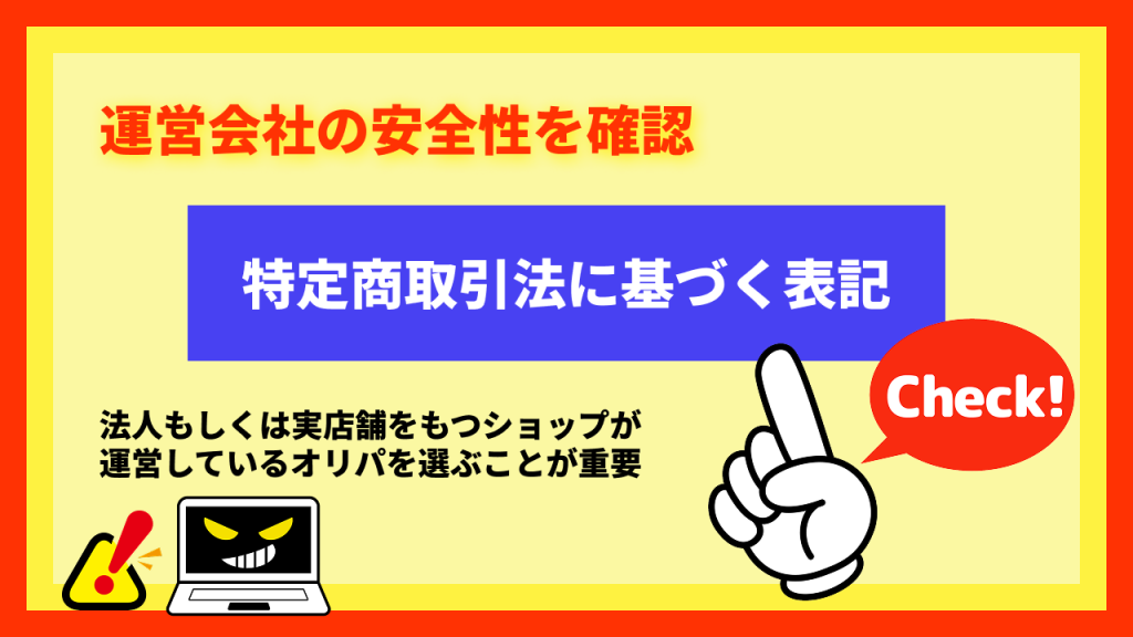 そこで、「特定商取引法に基づく表記」があるかどうかを必ず確認しましょう。