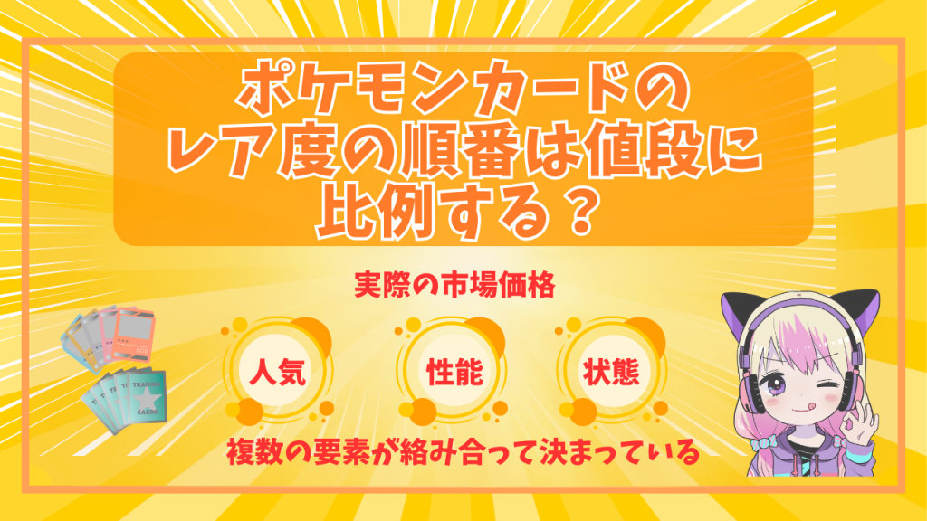 ポケモンカードのレア度は封入率の高さを示す指標ですが、実際の市場価格は人気・性能・状態など複数の要素が絡み合って決まります。